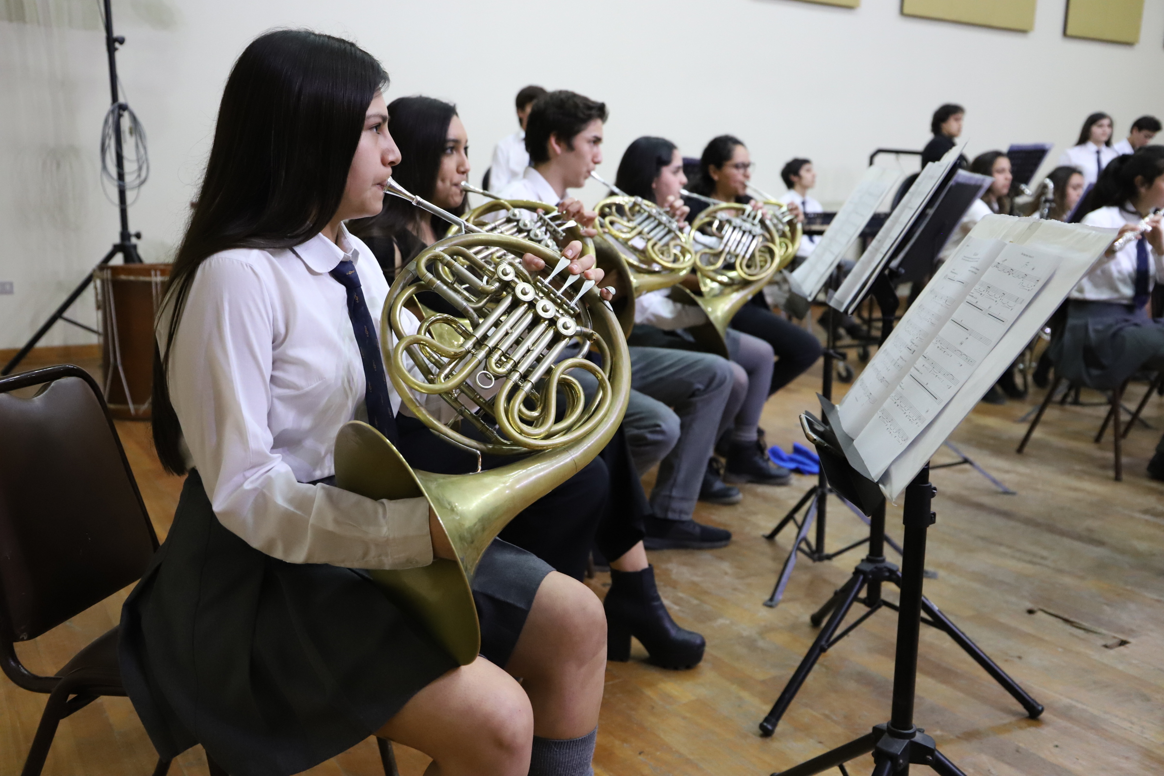 Los primeros conjuntos en presentarse fueron la Orquesta Sinfónica Infantil, interpretado por estudiantes de 6to a 7mo básico, y dirigido por el maestro y profesor de viola, Ricardo Muñoz Búrquez; para luego, dar lugar a la Banda Sinfónica Intermedia, con alumnos y alumnas de 8vo básico, 2do y 4to medio, a cargo de la profesora de percusión Nydia Morgado González. Mientras que la segunda jornada musical, estuvo bajo la batuta del maestro Hugo Domínguez Cruzat quien dirigió a estudiantes de 6to a 7mo básico de la Banda Sinfónica Infantil. Posteriormente, la Orquesta Filarmónica, conformada por alumnos desde 8vo básico a 3eros medios, deleitó a los asistentes con su atractiva presentación.El ciclo de conciertos continuó con la Orquesta Sinfónica Juvenil Jorge Peña Hen. Conjunto dirigido por el director Ricardo Muñoz Burquez, quienes presentaron una colosal propuesta del compositor argentino Alberto Ginastera, denominada ‘Estancia’, Op.8; un ballet compuesto por un acto y cinco escenas, de las que interpretaron ‘Los trabajadores agrícolas’ y ‘Los peones de la hacienda’. Finalmente, la Banda Sinfónica Juvenil fue la encargada de poner el broche de oro a este evento musical.