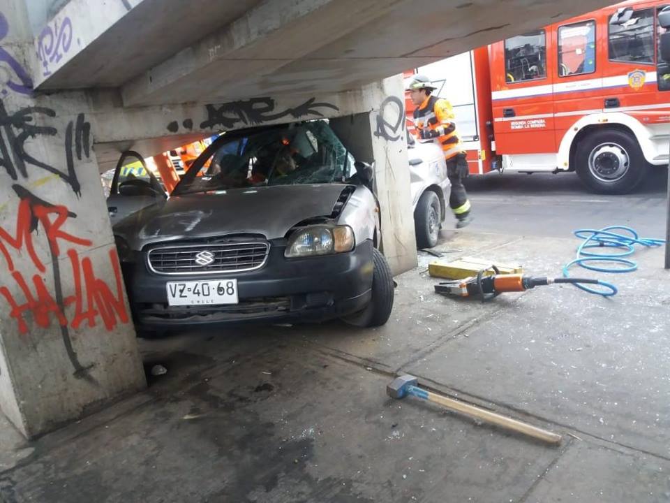Una ardua labor debieron realizar los voluntarios de Bomberos de La Serena para rescatar a un hombre de aproximadamente 25 años de edad, quien luego de perder el control del vehículo Suzuki Baleno, quedó incrustado bajo la pasarela del supermercado Lider, en la Ruta 5 Norte.