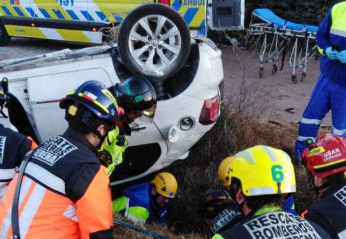 Según la información preliminar entregada por los equipos de emergencia, al menos tres personas resultaron con lesiones de diversa consideración luego que el conductor de un Volskwagen Gol perdiera el control del vehículo y volcara en una zanja que se encuentra a un costado del camino.