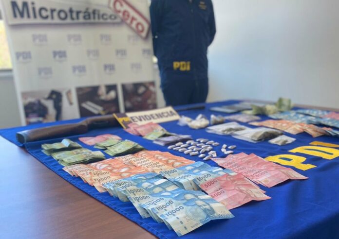 Además de desarticular los puntos de venta y detener a los líderes de la banda, en este allanamiento, la PDI incautó 3 millones 478 mil pesos en dinero efectivo, 27 envoltorios de papel con cocaína base en su interior, una bolsa con cannabis, un rifle de aire comprimido, entre otras especies.