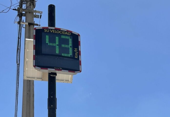 El dispositivo, que se encuentra ubicado en la intersección de Cisternas con Los Plátanos, no cursará multas, ya que su objetivo es informar a los conductores la velocidad a la que circulan mediante un panel digital.
