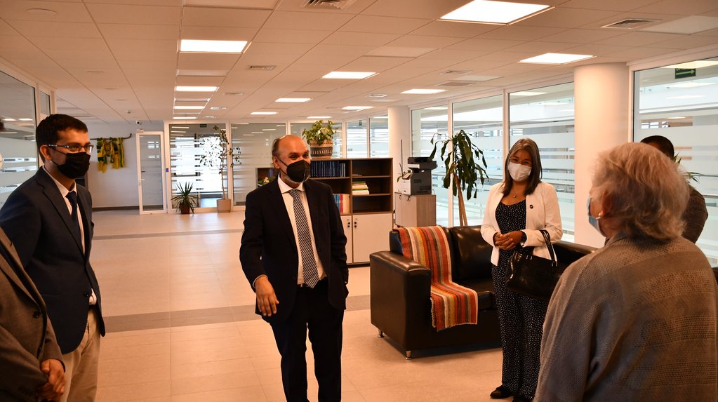 “Desde esas dos perspectivas vemos que para la población en general es muy cómodo llegar a este edificio con amplias dependencias y múltiples formas de ser atendidos y para los funcionarios también les otorga una seguridad en su desempeño y posibilidades de desarrollar su labor de una manera grata, en un entorno luminoso, con aislación que permite que no hayan ruidos disruptivos respecto de las audiencias o atención que se está realizando”, agregó el ministro.