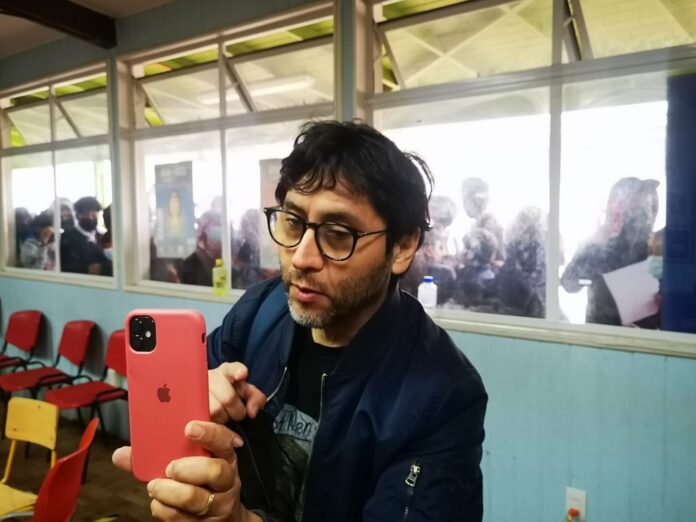 Narea tuvo tiempo para compartir con los profesores y luego en el recreo con todos los estudiantes del colegio, para después dar una charla con un grupo de 40 estudiantes, quienes escucharon atentamente como el músico les contaba sobre sus inicios en Los Prisioneros.