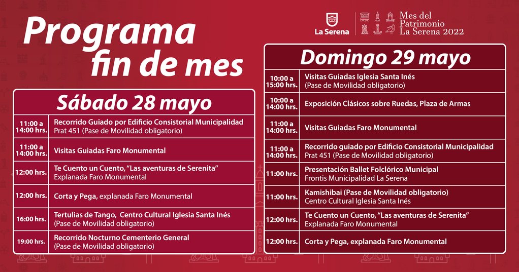 El Mes de los Patrimonios este 2022 nuevamente se puedo celebrar de forma presencial y el municipio de La Serena elaboró un calendario de actividades, que finaliza este fin de semana con destacados eventos donde puede participar toda la comunidad.