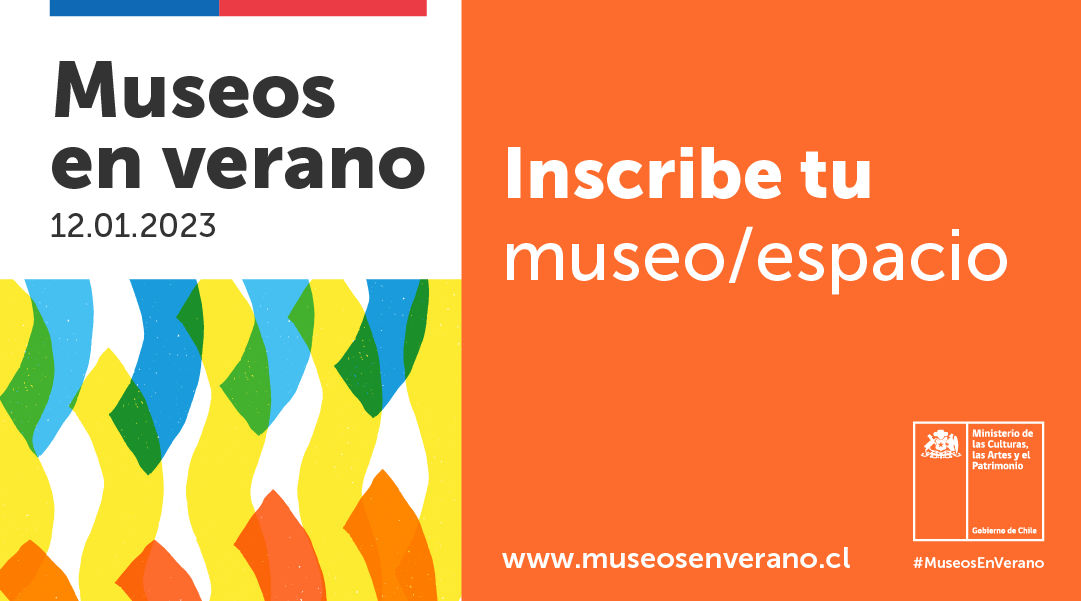 El Ministerio de las Culturas, las Artes y el Patrimonio invita a todos los museos públicos y privados del país a ser parte de la tercera versión de Museos en Verano (#MuseosEnVerano), que se realizará el jueves 12 de enero de 2023 con el objetivo de promover las visitas presenciales a los espacios culturales y patrimoniales a lo largo de todo Chile.