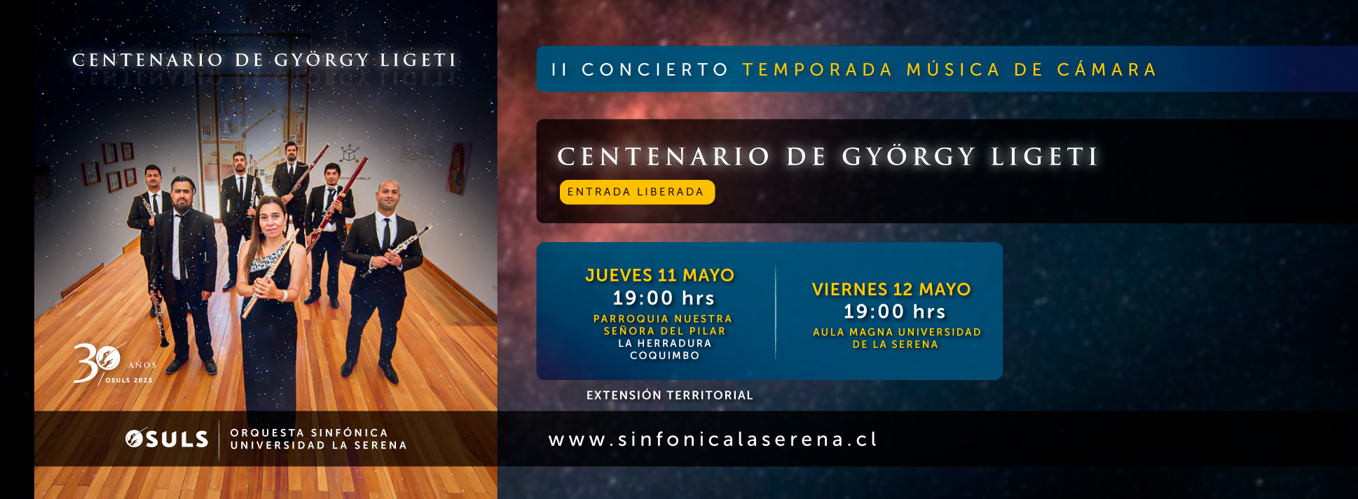 El viaje musical en formato íntimo contará con su tradicional extensión territorial en la Parroquia Nuestra Señora del Pilar de La Herradura, el jueves 11 de mayo. Posteriormente, el viernes 12 de mayo, el ensamble de vientos OSULS se trasladará hasta el Aula Magna de La Serena para replicar dicho programa. Ambos conciertos se realizarán a las 19:00 horas, con entrada liberada y sin inscripción previa.
