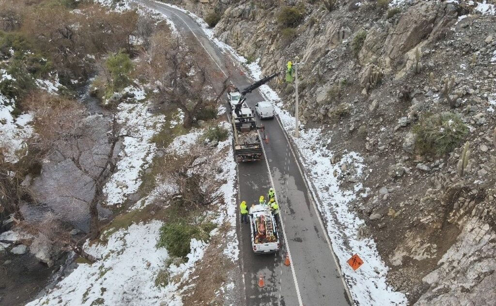 Los trabajos, que enfrentaron condiciones climáticas extremas con fuertes vientos, lluvias y abundante nieve, pudieron iniciarse una vez que se logró el despeje de las vías. Esta coordinación fue clave y se realizó en conjunto con la Municipalidad de Monte Patria, la Delegación Presidencial y Carabineros del retén de Tulahuén, quienes apoyaron en el control del tránsito, dada la afluencia de turistas en la zona durante el fin de semana