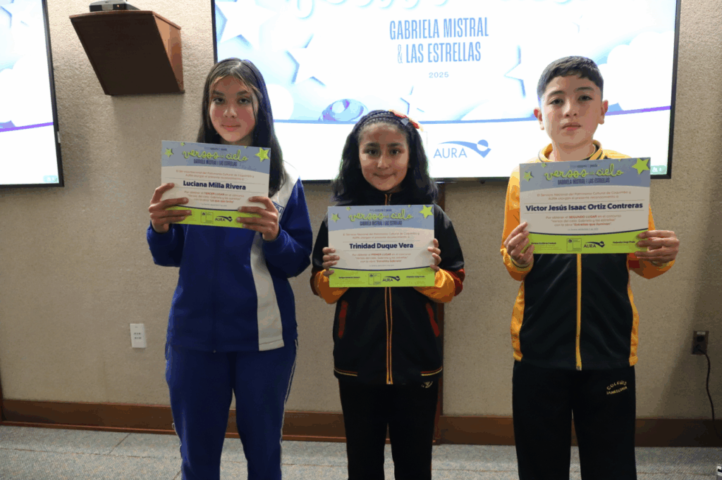 Gracias a la convocatoria conjunta del Servicio Nacional del Patrimonio Cultural de la Región de Coquimbo y AURA (Asociación de Universidades para la Investigación en Astronomía), este año se realizó el primer concurso “Versos del cielo: Gabriela y las estrellas”, dirigido a estudiantes de 5° a 8° básico de las tres provincias. La convocatoria unió el legado de Gabriela Mistral y los cielos que la vieron nacer y crecer, en las voces de 127 niños, niñas y adolescentes que participaron en esta exitosa primera versión del concurso.