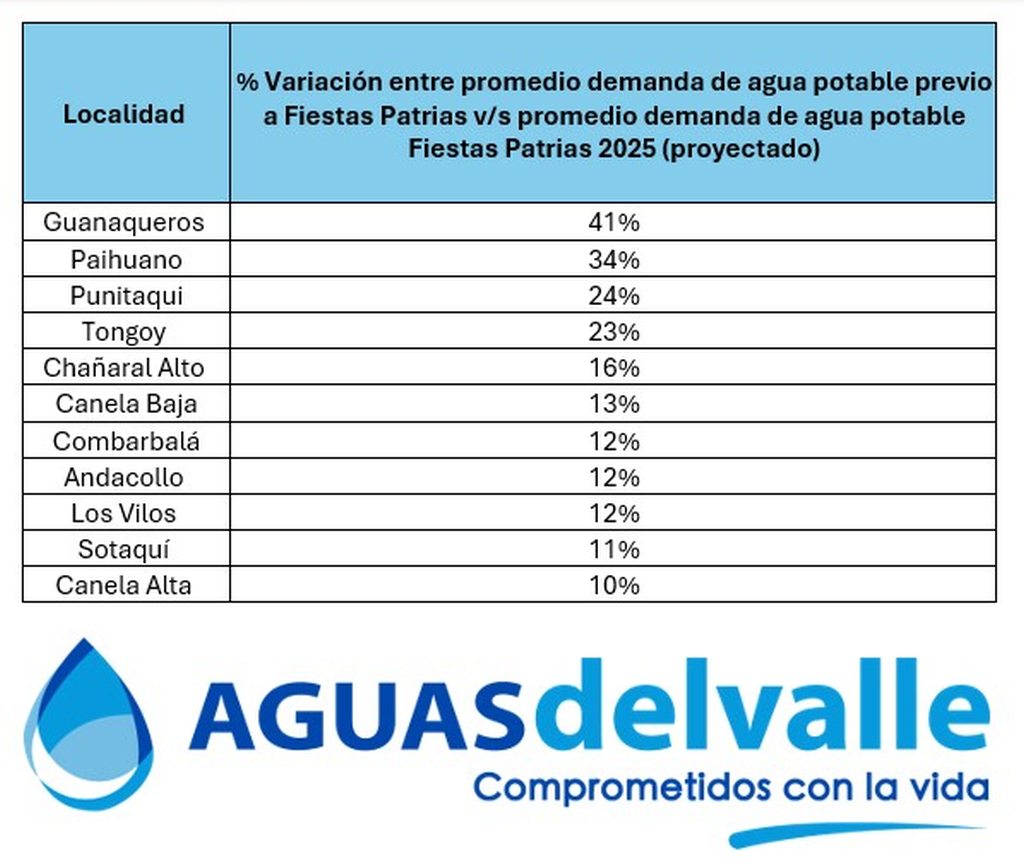 De acuerdo con los promedios de consumo históricos, las localidades de Guanaqueros y Tongoy son las que más aumentan su demanda de agua versus una semana normal, con cerca de un 40% adicional. Lo siguen las comunas de Paihuano y Punitaqui, donde el consumo aumenta en un 34% y 24%, respectivamente.