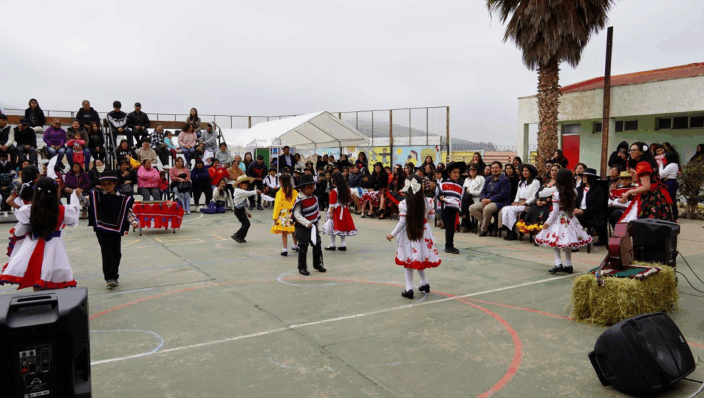 Las y los estudiantes de prekínder a octavo básico, con trajes típicos presentaron bailes y coreografías de la Cueca, la Guaracha, Mazamorra, El Costillar, la Resfalosa, La Sajuriana, La Golpeadita, El Chapecao, El Huayno, Fantasía de Rapa Nui, el taller de música y danza y el grupo folklórico de la escuela “Ecos del Alma”.
