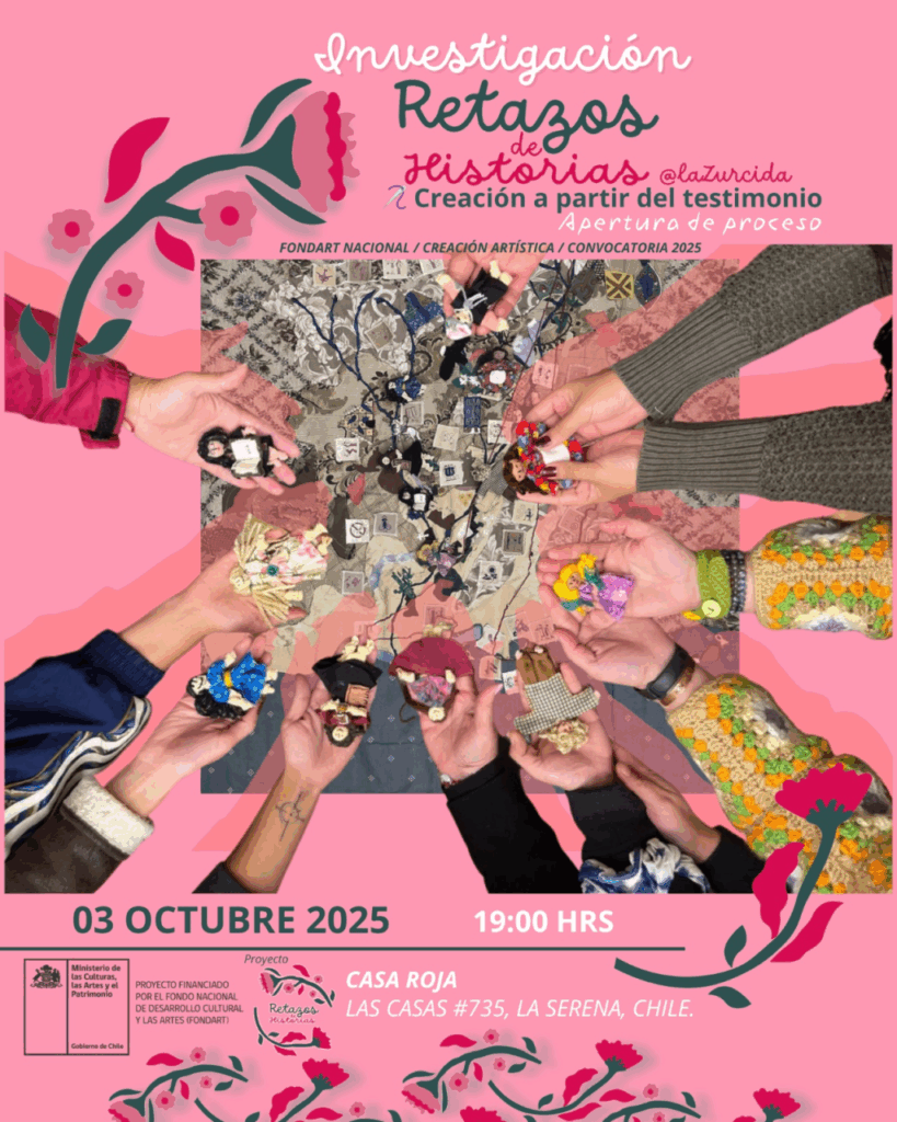 El proyecto interdisciplinario “Retazos de Historias: retratos textiles sonoros de mujeres históricas de Elqui, Limarí y Choapa” invita a la comunidad a participar en su primera jornada de apertura de proceso, que se realizará el viernes 3 de octubre, a las 19:00 horas, en el espacio político-cultural Casa Roja, ubicado en Calle Las Casas #735, centro de La Serena.