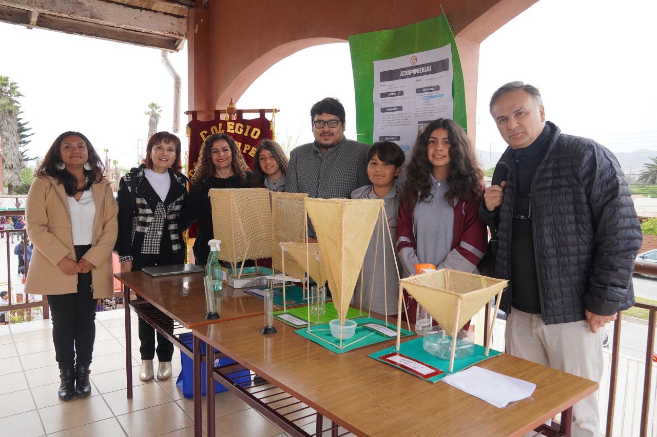 Una de las estudiantes expositoras fue Antonia Ferrada del colegio Caleta San Pedro, con su proyecto de atrapaniebla señalando que “es una forma de capturar el agua de lugares donde haya camanchaca, por ejemplo, en lugares secos, Arica, el Desierto de Atacama, entre otras. El atrapaniebla puede ser de muchas formas. Consiste en que en la neblina se acerca al atrapaniebla y se condensa el agua y pasa a estado líquido”.