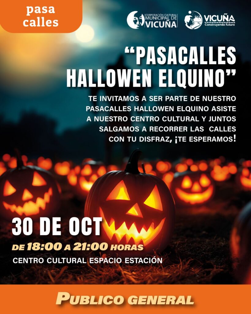 La Corporación Cultural Municipal de Vicuña invita a la comunidad a ser parte del Pasacalles de Halloween Elquino, que se realizará el jueves 30 de octubre en el Centro Cultural Espacio Estación, a partir de las 18:00 horas.