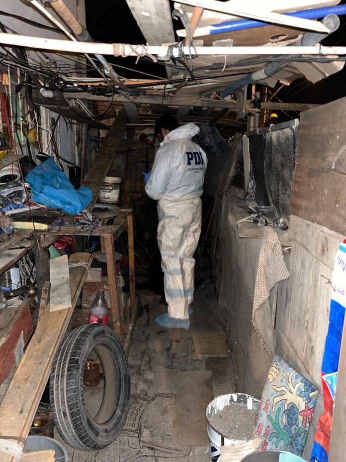 A esta hora, por instrucción del Ministerio Público, la PDI desarrolla el trabajo científico técnico en el sitio del suceso, para establecer circunstancias del homicidio, con peritos del Laboratorio de Criminalística Regional.