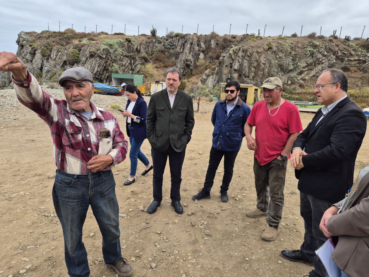El subsecretario de pesca Julio Salas lideró el encuentro en la costa de la comuna de Canela, luego de la preocupación generada por la demanda interpuesta contra dos de los pescadores que han habitado y trabajado históricamente en la zona.