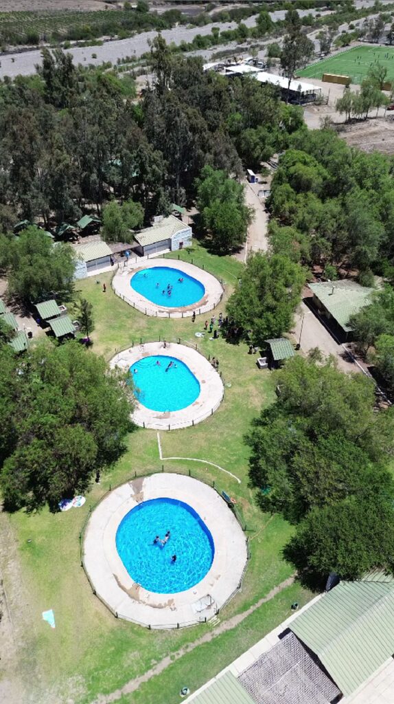 El complejo recreacional cuenta con 3 piscinas, quinchos, áreas verdes, baños y duchas.