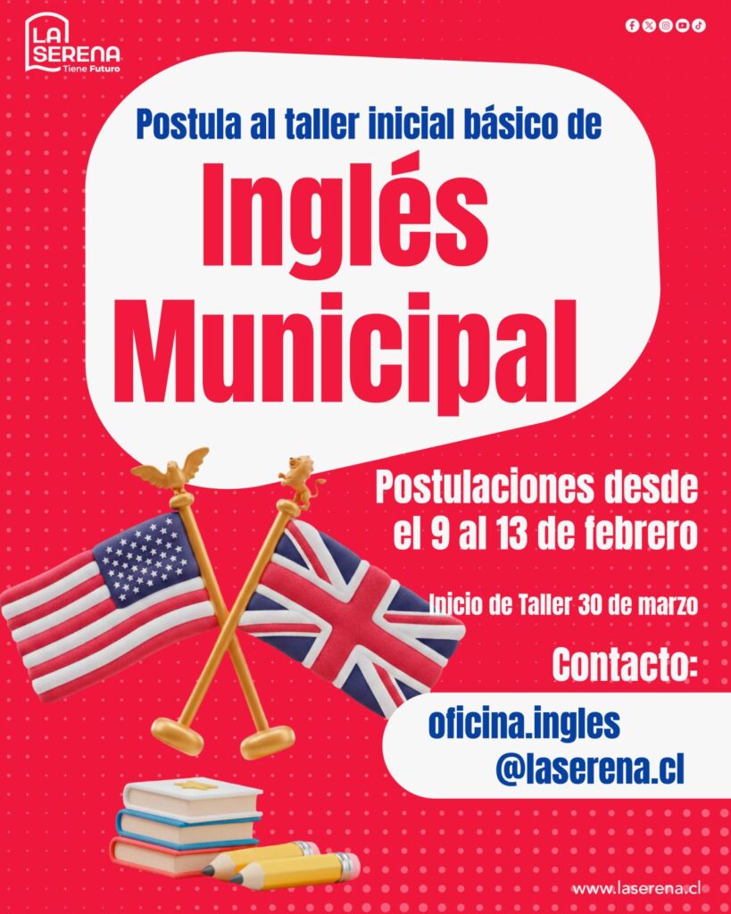 Por último, como el inicio del taller está ad portas de empezar, se recomienda reunir la documentación con anticipación (copia de la cédula, certificado de residencia, certificado de estudios, etc) y completar correctamente el formulario digital desde una cuenta Gmail. Quienes deseen más información pueden escribir a oficina.ingles@laserena.cl y revisar los detalles del proceso en el sitio web municipal.