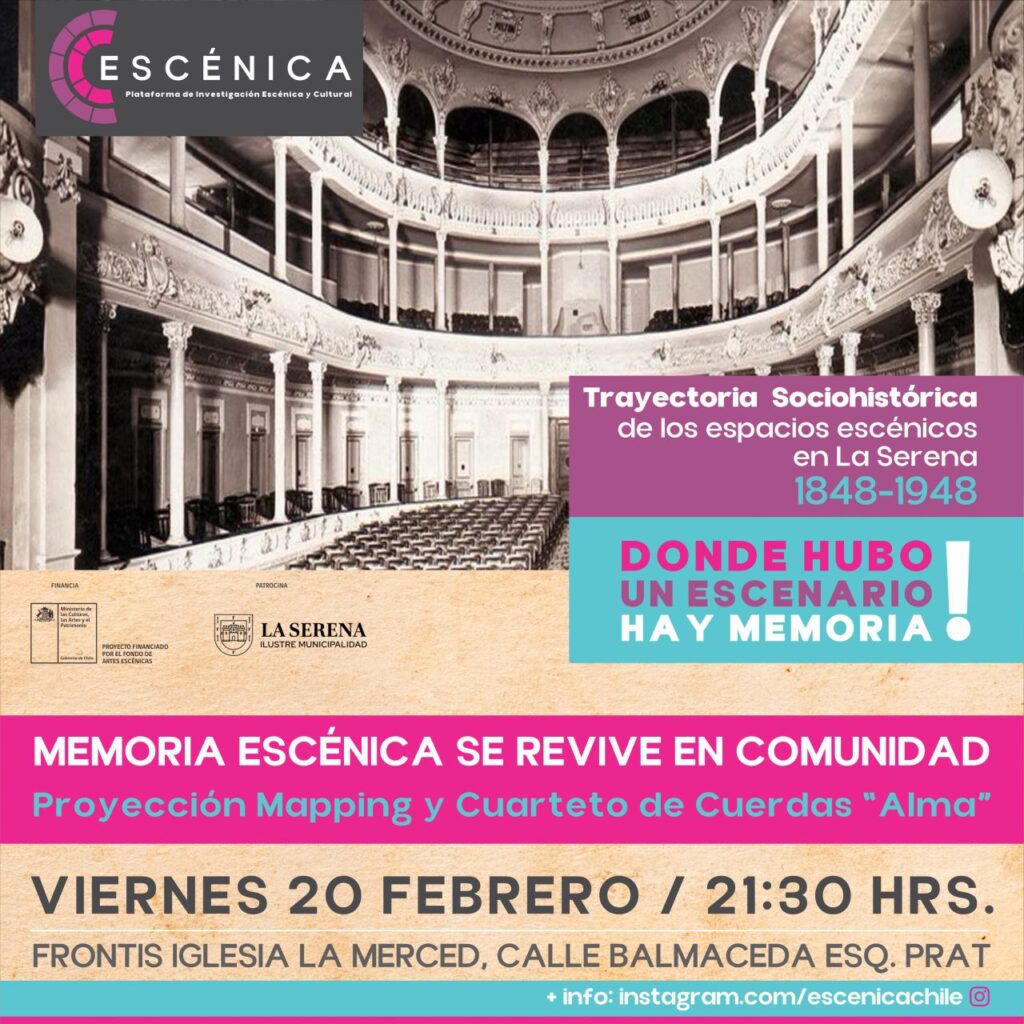 Tras meses de investigación en archivos, bibliotecas y colecciones patrimoniales, el proyecto “Trayectoria sociohistórica de los espacios escénicos en La Serena, 1848–1948” se prepara para realizar su actividad de cierre con un evento nocturno de proyección pública y música en vivo, programado para el viernes 20 de febrero, en el centro histórico de la ciudad.
