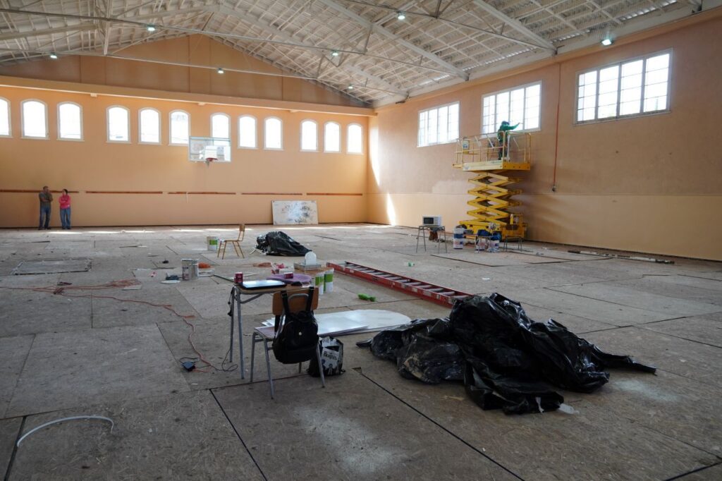Por su parte, el gimnasio tiene una inversión de 81 millones de pesos y contempla la reparación del cielo, pinturas de muros, ventanas y puertas. Asimismo, se incorporó el piso del recinto, cuya reparación se iniciará una vez concluido el proceso de pintura. Las obras tienen un 60% de avance.