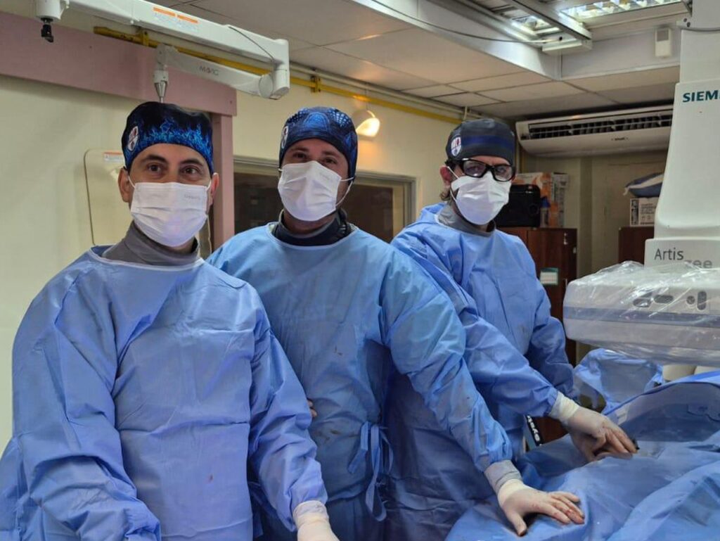 La intervención se realizó en el pabellón de Hemodinamia del Hospital de La Serena, utilizando imágenes en tiempo real para guiar el avance del catéter a través del sistema venoso, el corazón, hasta llegar a la arteria pulmonar. Este control es fundamental para asegurar precisión durante la navegación intravascular y evitar complicaciones. En este contexto, la coordinación entre los cardiocirujanos y cirujanos vasculares fue clave para el éxito del procedimiento, integrando experiencia en técnicas endovasculares con conocimiento en anatomía cardíaca y manejo de pacientes críticos.