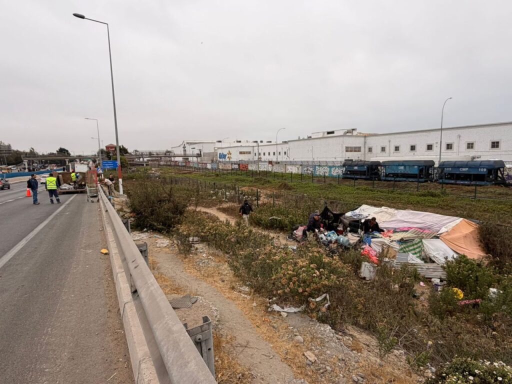 Es así como el retiro de rucos inició cerca de las 9.30 horas, con SACYR cortando una pista de la Ruta 5 para que los inspectores municipales efectuaran el desarme de los asentamientos ilegales y sacaran objetos desde su interior. Trabajos que se extendieron por más de una hora y media.